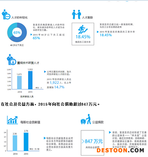 與年報(bào)一起發(fā)布的還有《復(fù)星醫(yī)藥2015年度企業(yè)社會(huì)責(zé)任報(bào)告》,公布了2015復(fù)興醫(yī)藥為CSR干了啥。