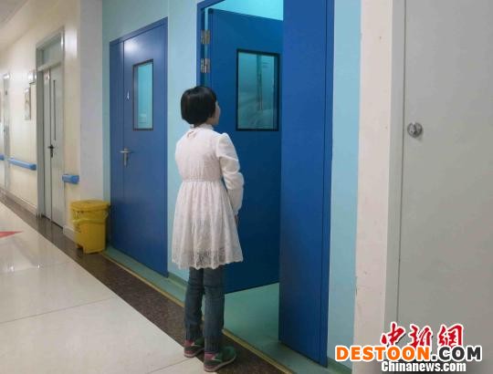 圖為濤濤的姐姐在病房外等著弟弟出來。