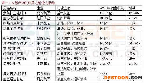 醫(yī)??刭M、限制輔助用藥、限制門診輸液,中藥注射液不斷中槍,雖然從2015年銷售數(shù)據(jù)看下滑并不明顯,但不少政策都出臺不久,反應到財報上會有滯后,未來中藥注射液市場或持續(xù)承壓。