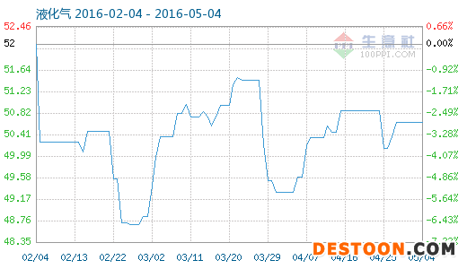5月5日液化氣商品指數(shù)為50.64,與昨日持平,較周期內(nèi)最高點125.66點(2012-03-25)下降了59.70%,較2016年02月28日最低點48.70點上漲了3.98%。(注:周期指2011-09-01至今)