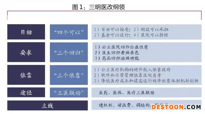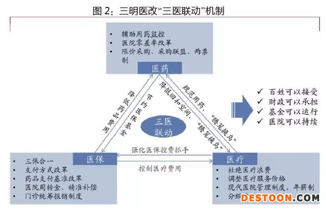 會(huì)議提出了探索“三險(xiǎn)合一”的管理模式、建立醫(yī)療機(jī)構(gòu)考核機(jī)制、建立基本醫(yī)療保險(xiǎn)周轉(zhuǎn)金制度、引入各級(jí)醫(yī)院間競(jìng)爭(zhēng)機(jī)制、成立藥品集中采購(gòu)監(jiān)管與使用工作領(lǐng)導(dǎo)小組、擴(kuò)大門診報(bào)銷范圍和比例、改革患者預(yù)繳金制度、積極推進(jìn)按單病種付費(fèi)與臨床路徑管理等十三項(xiàng)措施,明確了醫(yī)藥、醫(yī)保、醫(yī)療“三醫(yī)聯(lián)動(dòng)”綜合改革的路徑。