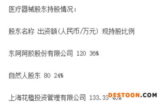 據(jù)悉,阿華醫(yī)療器械創(chuàng)始于1987年,于2000年4月由東阿阿膠重組,新成立的公司注冊資本333.33萬元,法人代表為東阿阿膠董事長秦玉峰。目前,公司主營業(yè)務(wù)是玻璃體溫計、電子體溫計、電子血壓計、血糖儀、醫(yī)用膏藥、醫(yī)用橡皮膏的生產(chǎn)與銷售,東阿阿膠持股比例為36%。