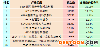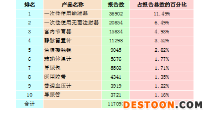 表2-2 報(bào)告數(shù)量排名前十位的無(wú)源醫(yī)療器械