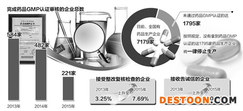 與此同時,《2015年全國收回藥品GMP證書情況統(tǒng)計》顯示,2015年全國共有140家藥企的144張GMP證書被收回。國家食藥監(jiān)總局公布的數據顯示,目前,全國有藥品生產企業(yè)7179家,未通過藥品GMP認證的達1795家。按照規(guī)定,沒有拿到“準生證”的這1795家藥品生產企業(yè)將一律停止生產。