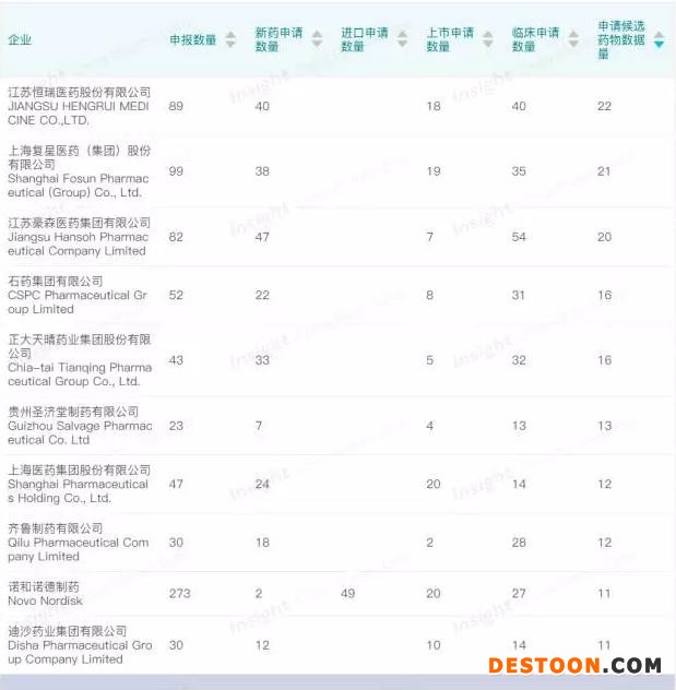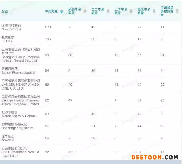 糖尿病領(lǐng)域藥企研發(fā)申報數(shù)量 TOP10