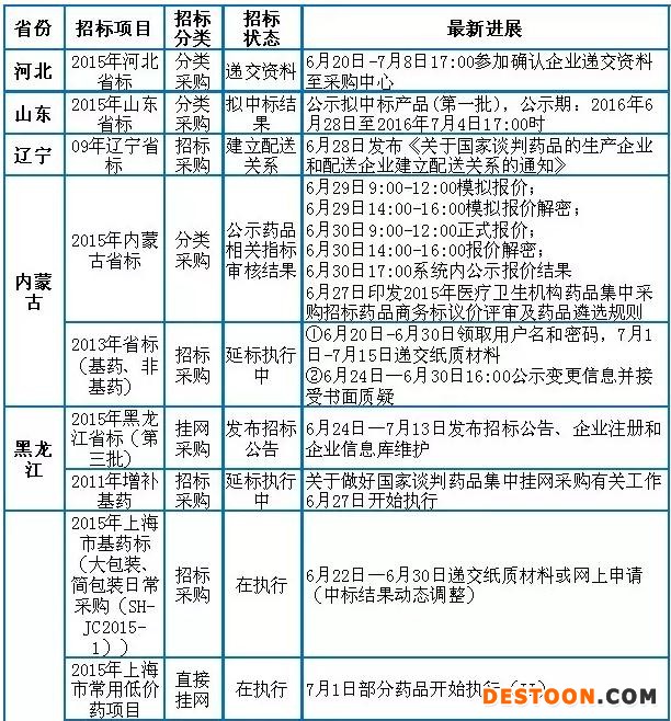 截至目前為止,全國目前各省發(fā)布藥品集中采購方案的情況是: