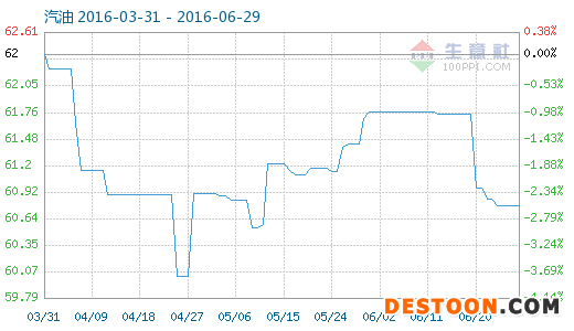 6月29日汽油商品指數(shù)為60.78,與昨日持平,較周期內(nèi)最高點(diǎn)109.10點(diǎn)(2012-03-25)下降了44.29%,較2016年04月27日最低點(diǎn)60.03點(diǎn)上漲了1.25%。(注:周期指2011-09-01至今)