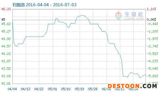7月3日石腦油商品指數(shù)為43.23,與昨日持平,較周期內(nèi)最高點(diǎn)102.62點(diǎn)(2012-09-24)下降了57.87%,較2016年06月29日最低點(diǎn)43.11點(diǎn)上漲了0.28%。(注:周期指2012-09-01至今)