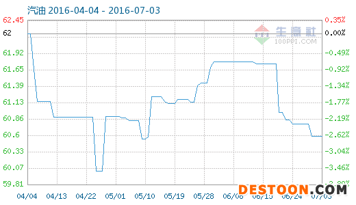 7月3日汽油商品指數(shù)為60.59,與昨日持平,較周期內(nèi)最高點(diǎn)109.10點(diǎn)(2012-03-25)下降了44.46%,較2016年04月27日最低點(diǎn)60.03點(diǎn)上漲了0.93%。(注:周期指2011-09-01至今)