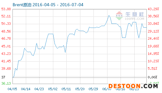核心提示:中國醫(yī)藥化工網(wǎng)訊7月4日Brent原油商品指數(shù)為50.25,較昨日上升了0.67點(diǎn),較周期內(nèi)最高點(diǎn)100.00點(diǎn)(2014-09-09)下降了49.75%,較