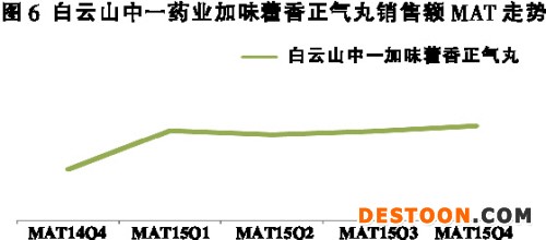 廣州白云山中一藥業(yè):華南地區(qū)祛暑用藥有六成市場被太極藿香正氣口服液和天士力藿香正氣滴丸瓜分,但本土企業(yè)廣州白云山中一藥業(yè)仍發(fā)揮終端優(yōu)勢,在華南市場分得一杯羹。白云山中一藥業(yè)加味藿香正氣丸在華南地區(qū)銷售占10%,近年銷售額MAT走勢穩(wěn)步上揚。