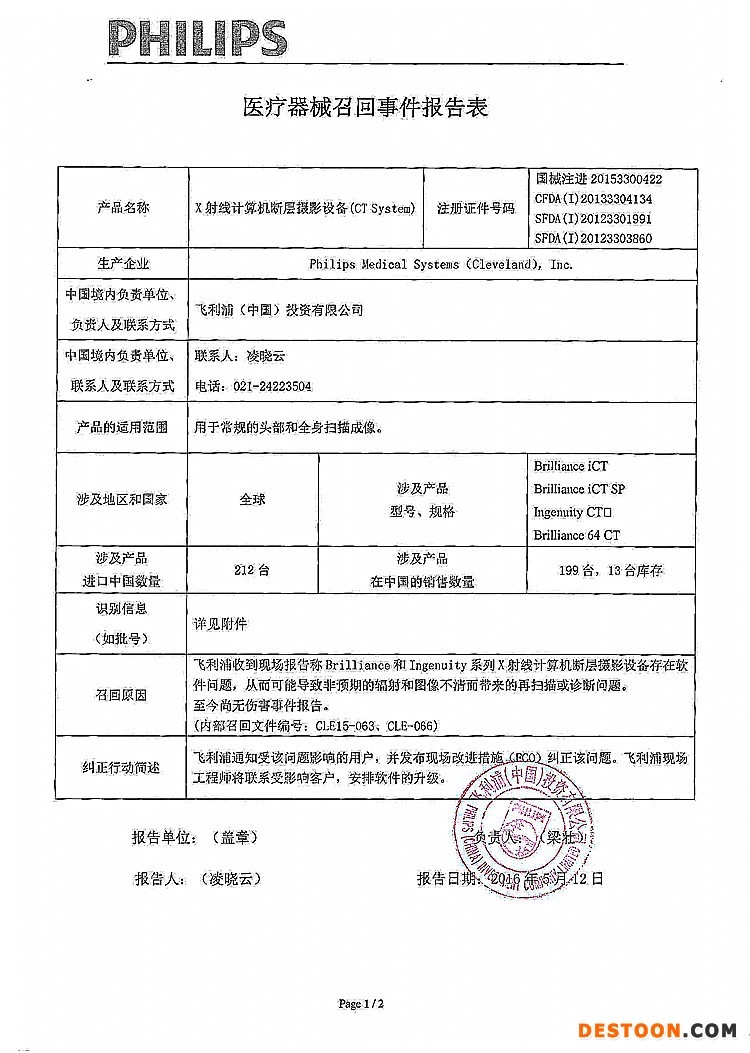 10、飛利浦(中國)投資有限公司對X射線計算機斷層攝影設備主動召回