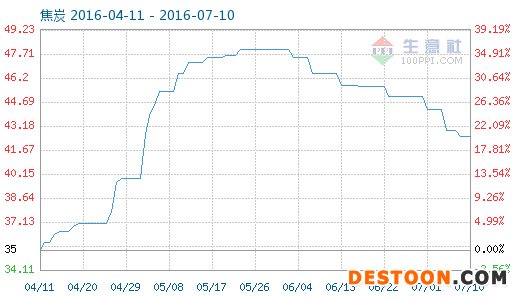 7月10日焦炭商品指數(shù)為42.52,與昨日持平,較周期內(nèi)最高點(diǎn)100.79點(diǎn)(2011-09-27)下降了57.81%,較2016年03月03日最低點(diǎn)34.65點(diǎn)上漲了22.71%。(注:周期指2011-09-01至今)
