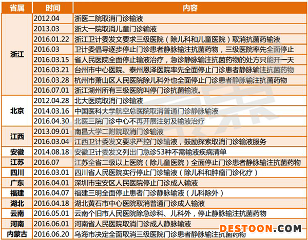 從2012年開始,各地就已經(jīng)陸續(xù)有叫停門診輸液的單個醫(yī)院,而到了今年則成為全國蔓延的大趨勢,這對于以輸液相關(guān)藥品為主營業(yè)務的企業(yè)無疑將產(chǎn)生巨大影響。