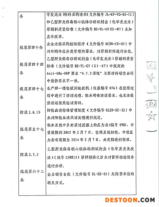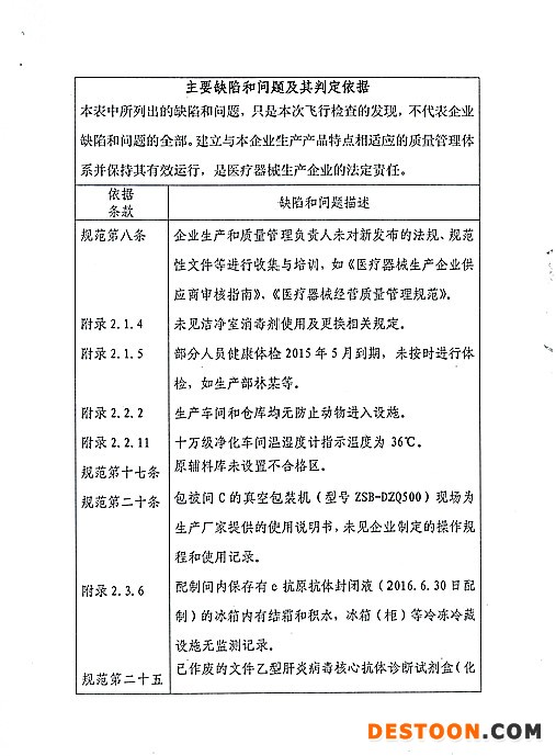 福建省洪誠(chéng)生物藥業(yè)有限公司的以下行為(見下表)不符合醫(yī)療器械生產(chǎn)質(zhì)量管理規(guī)范相關(guān)要求,質(zhì)量管理體系存在缺陷。現(xiàn)由福建省食品藥品監(jiān)督管理局責(zé)成福建省洪誠(chéng)生物藥業(yè)有限公司對(duì)上述缺陷限期整改。
