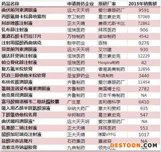 附:首仿藥優(yōu)先審評名單及2015年市場銷售規(guī)模(萬元)