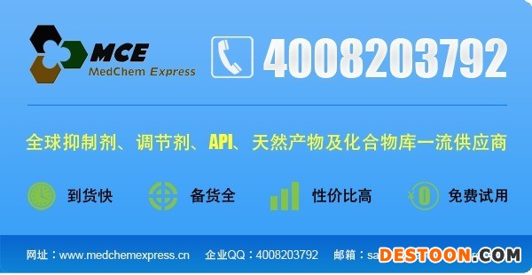 | NVP 231產(chǎn)品描述:NVP-231 is a potent, specific, and reversible CerK inhibitor(IC50=12±2 nM) that competitively inhibits binding of ceramide to CerK.IC50 Value: 12±2 nM [1]Target: CERKin vitro: NVP-231 showed an IC50 value of 12 ± 2 nM and 90% inhibition at 100 nM in the radioassay. NVP-231 did not compete with ATP but rather with ceramide, displaying an inhibition constant (Ki) of 7.4 nM. Furthermore, inhibition by NVP-231 was instantaneous and fully reversible, implying that this compound does not covalently modify CerK. At 10 nM, NVP-231 inhibited C1P formation by >50%; at 100 nM, NVP-231 achieved complete inhibition. Thus the potency and efficacy of NVP-231 observed in cell culture are consistent with those found in vitro. It is noteworthy that, NVP-231 did not inhibit GlcCer and SM formation; rather, it increased these metabolites in correlation with compound concentration, demonstrating that NVP-231 does not act as a general inhibitor of ceramide metabolism [1]. The EC(50) of NVP-231 in thi 公司介紹:MedChemExpress(MCE)專注于各種抑制劑、激動劑、API及化合物庫,總部位于美國新澤西,分別在瑞典和上海設(shè)有歐洲區(qū)子公司和亞洲區(qū)總代理,營銷網(wǎng)點(diǎn)遍及全球20多個(gè)國家地區(qū)。MCE經(jīng)過多年努力已成為全球生物活性小分子領(lǐng)域的一流供應(yīng)商, 產(chǎn)品涵蓋癌癥、神經(jīng)科學(xué)、抗感染、表觀遺傳學(xué)等20個(gè)熱門研究領(lǐng)域,PI3K、MAPK等近千個(gè)細(xì)分靶點(diǎn),超過4000個(gè)活性小分子化合物現(xiàn)貨,以及GPCR、API、離子通道等超過20種不同類型的化合物庫,同時(shí)提供從毫克到千克的專業(yè)定制合成服務(wù)。 MCE 對每批產(chǎn)品都進(jìn)行嚴(yán)格的LCMS和NMR檢驗(yàn),其產(chǎn)品已被全球近萬名客戶廣泛使用并發(fā)表大量文章、專利; MCE 定期增加各領(lǐng)域熱門抑制劑、激動劑,不斷擴(kuò)增已有化合物庫,以滿足最新的科研需求; 數(shù)千種產(chǎn)品在上海有充足備貨,24-48小時(shí)內(nèi)送達(dá)客戶; 大量產(chǎn)品提供免費(fèi)試用裝;已為全球多個(gè)知名企業(yè)、院校構(gòu)建各種定制型化合物庫。 產(chǎn)品鏈接:www.medchemexpress.cn/nvp-231.html ![]() |