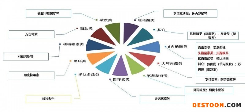 注:磺胺類及喹諾酮類是人工合成的抗感染藥物,嚴(yán)格意義上不屬于抗生素。