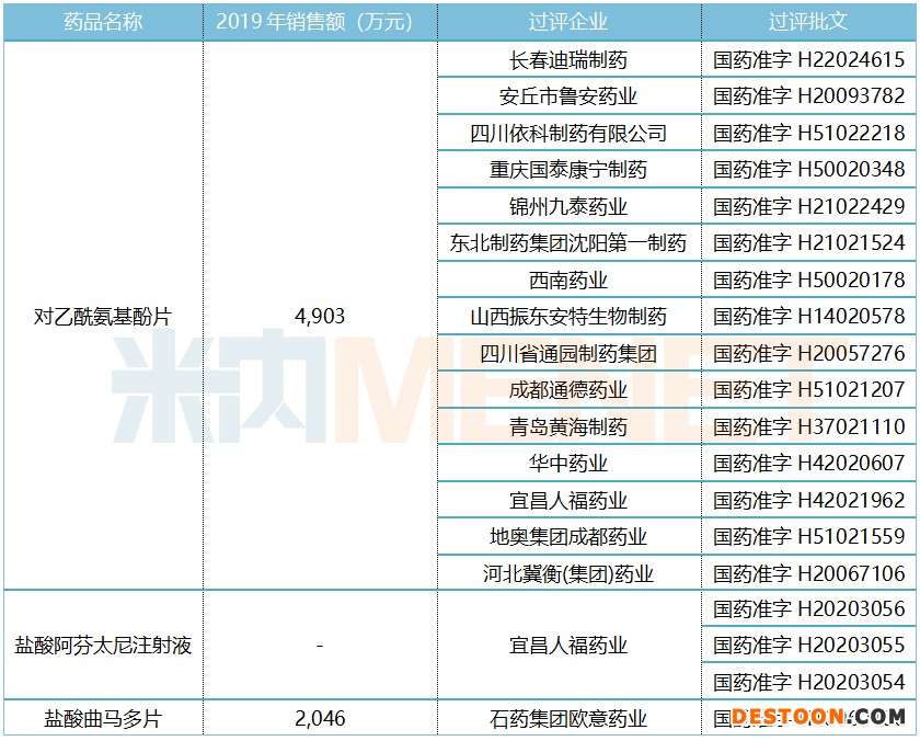 米內(nèi)網(wǎng)數(shù)據(jù)顯示,截至2020年7月1日,通過(guò)及視同通過(guò)一致評(píng)價(jià)的止痛藥涉及3個(gè)產(chǎn)品,其中對(duì)乙酰氨基酚片過(guò)評(píng)企業(yè)達(dá)15家,人福的鹽酸阿芬/太/尼注射液為新分類獲批視同過(guò)評(píng),鹽酸曲馬多片目前僅有石藥歐意過(guò)評(píng)。