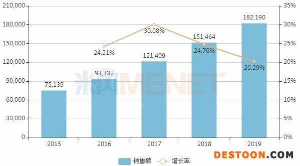 米內(nèi)網(wǎng)數(shù)據(jù)顯示,在限輸限抗大環(huán)境下,利奈唑胺注射液在中國城市公立醫(yī)院、縣級公立醫(yī)院、城市社區(qū)中心以及鄉(xiāng)鎮(zhèn)衛(wèi)生院(簡稱中國公立醫(yī)療機(jī)構(gòu))終端的銷售額仍呈現(xiàn)逐年上漲的態(tài)勢,2019年實(shí)現(xiàn)銷售收入18.22億元,同比增長20.29%。