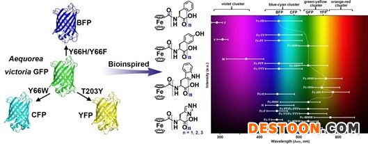 7月8日,美國(guó)化學(xué)會(huì)(ACS)對(duì)天津大學(xué)化工學(xué)院教授齊崴、博士王躍飛團(tuán)隊(duì)關(guān)于“彩虹色仿生熒光多肽顆粒”的研究工作進(jìn)行了報(bào)道與新聞推送。該學(xué)會(huì)每周從ACS旗下所有67種期刊中選擇3-4篇最新發(fā)表的論文進(jìn)行專題推送,這也是該欄目自2009年網(wǎng)絡(luò)版刊發(fā)以來第一次以主題新聞推送的形式選取報(bào)道天津大學(xué)獨(dú)立通訊完成的前沿研究性論文。海洋生物水母中天然綠色熒光蛋白(GFP)是一種能夠發(fā)射綠色熒光的生物分子,華裔科學(xué)家錢永健因?qū)FP的定向改造研究被授予2008年諾貝爾化學(xué)獎(jiǎng),其開發(fā)的多色系熒光蛋白被廣泛應(yīng)用于生命體系中不同尺度精細(xì)結(jié)構(gòu)的精準(zhǔn)動(dòng)態(tài)成像。然而,對(duì)于非生物學(xué)背景研究者而言,GFP使用技術(shù)要求較高、操作相對(duì)復(fù)雜,價(jià)格也較昂貴。因此,科研工作者仍在致力于尋求更為廉價(jià)且使用簡(jiǎn)便的生物成像熒光分子。GFP啟發(fā)的彩虹熒光多肽設(shè)計(jì)近年來,齊崴、王躍飛團(tuán)隊(duì)一直開展新型仿生熒光多肽的研究工作。近期,該課題組開發(fā)的基于多色系多肽熒光顆粒的“顏色工具箱”,可作為潛在的GFP替代物。在該工作中,研究團(tuán)隊(duì)設(shè)計(jì)了12種含有苯基丙氨酸、酪氨酸、色氨酸或組氨酸的短肽,通過技術(shù)手段使得多肽分子組裝成球形熒光顆粒,改變多肽分子序列后,肽基納米顆粒能夠發(fā)出不同顏色的熒光,覆蓋紅、橙、黃、綠、藍(lán)在內(nèi)的整個(gè)可見光區(qū)域顏色,研究者將其命名為“彩虹色套裝”。據(jù)介紹,在生理?xiàng)l件下,仿生熒光多肽展現(xiàn)出良好的生物活性、生物相容性、光穩(wěn)定性和靶向特性,并且使用簡(jiǎn)便、成本低廉,在生物成像與檢測(cè)領(lǐng)域具有很好的應(yīng)用前景。(100yiyao.com)