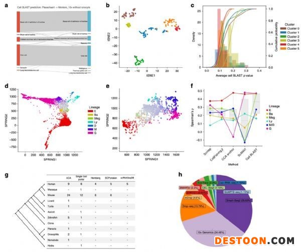 通過收集大量已發(fā)表的單細胞轉(zhuǎn)錄組數(shù)據(jù),作者建立了一個涵蓋2,989,582個單細胞、8個物種、27個不同的組織器官的數(shù)據(jù)庫,稱為Animal Cell Atlas (ACA)(圖 g-h)。作者對ACA中的細胞注釋進行了詳細的整理,并使用Cell Ontology構(gòu)建了一套結(jié)構(gòu)化的細胞類型標注,用于統(tǒng)一不同數(shù)據(jù)集中的標注以及支持細胞類型的推斷。
