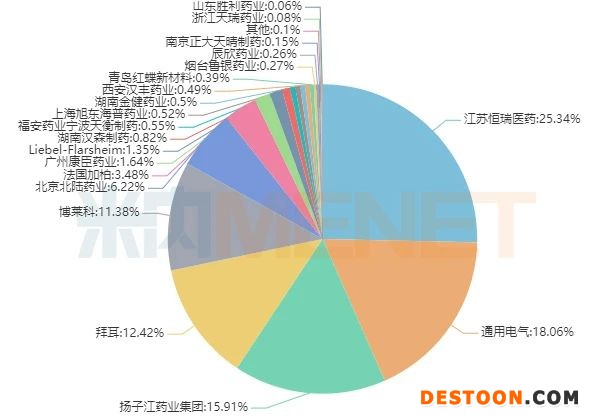 圖2:2019年中國(guó)公立醫(yī)療機(jī)構(gòu)終端化學(xué)藥造影劑廠家格局
