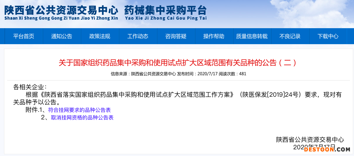 近日,陜西省藥械集中采購平臺發(fā)布《關(guān)于國家組織藥品集中采購和使用試點擴(kuò)大區(qū)域范圍有關(guān)品種的公告(二)》。