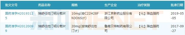 圖2:目前已獲批的瑞舒伐他汀鈣分散片相關(guān)情況