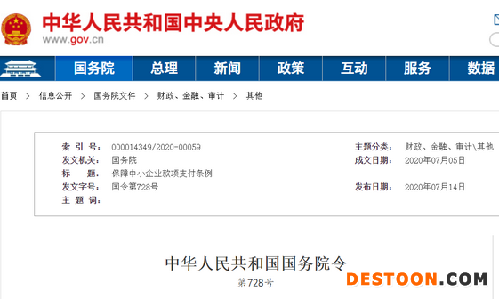 7月18日,國務院官網(wǎng)消息顯示,為切實保護中小企業(yè)合法權(quán)益、進一步優(yōu)化營商環(huán)境,國務院日前公布《保障中小企業(yè)款項支付條例》(下稱《條例》),自2020年9月1日起施行。