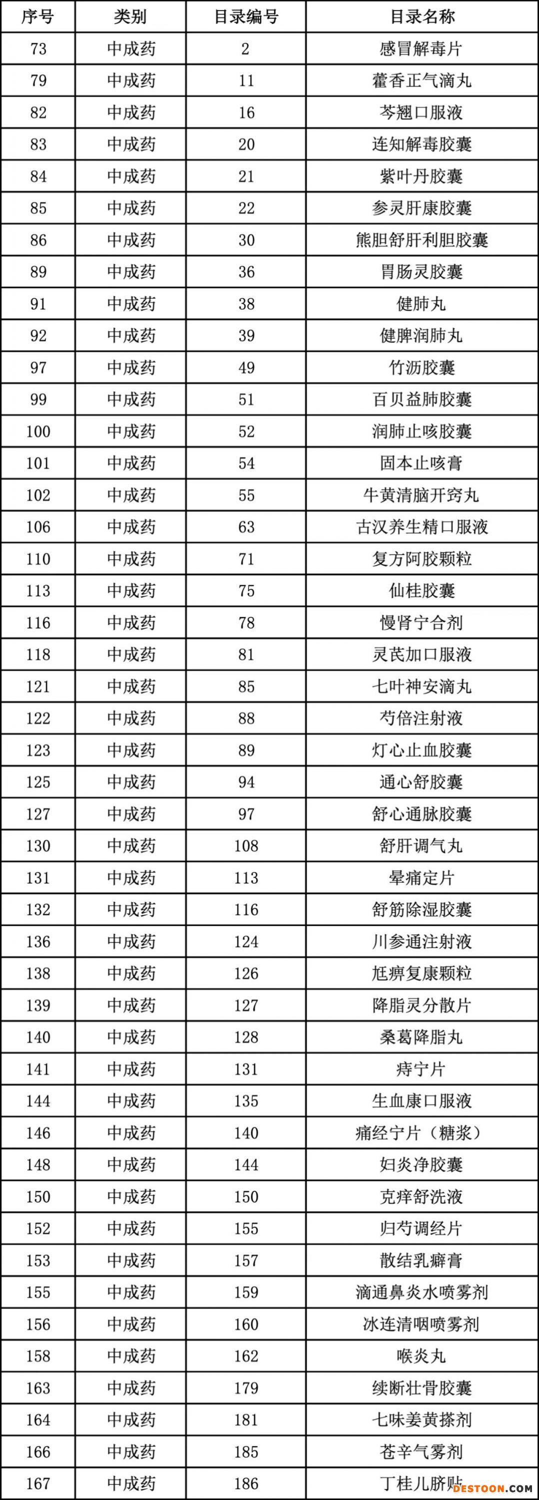 值得關(guān)注的是,其余品種均為中成藥,數(shù)量為96個。據(jù)《醫(yī)藥經(jīng)濟(jì)報》記者不完全統(tǒng)計(jì),丁桂兒臍貼、藿香正氣滴丸、熊膽舒肝利膽膠囊、阿膠補(bǔ)血顆粒、感冒解毒片等46個獨(dú)家品種位列其中。