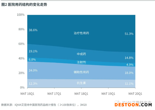 此前,醫(yī)保政策曾限制非藥品類在藥店銷售,造成保健品類別2019年的增速下降8%。結(jié)合這一案例,IQVIA預(yù)測(cè),此番醫(yī)保目錄調(diào)整方案一旦落地,在未來(lái)3-5年將對(duì)OTC和零售藥店造成巨大沖擊——OTC藥品分為治療性用藥和預(yù)防性用藥,治療性用藥的需求持續(xù)存在。對(duì)照醫(yī)院市場(chǎng),藥品在今年一季度疫情影響同比增速顯著下降的情況下,治療性用藥依然保持高于市場(chǎng)平均的增幅。如果目錄調(diào)整如期落地,這部分OTC的治療需求或回到醫(yī)療機(jī)構(gòu)由處方藥替代。盡管隨著處方外流的推進(jìn)最終依然會(huì)流向零售渠道,但是這將經(jīng)歷一個(gè)“顧客先回流醫(yī)療機(jī)構(gòu),主要是社區(qū)醫(yī)院,之后再返流至藥店和電商”的過(guò)程,短期內(nèi)對(duì)OTC和線下零售藥店會(huì)造成較大的影響。(參見圖2)