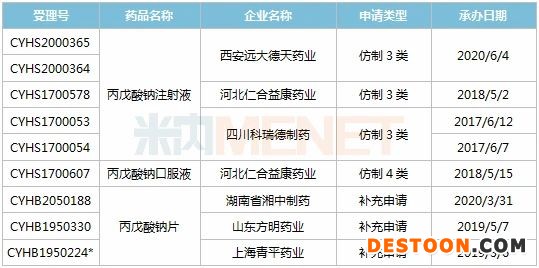 米內(nèi)網(wǎng)數(shù)據(jù)顯示,目前有3家藥企以仿制3類提交丙戊酸鈉注射液上市申請(qǐng),目前還未有企業(yè)獲批;河北仁合益康藥業(yè)以仿制4類提交丙戊酸鈉口服液上市申請(qǐng),目前還處于“在審評(píng)審批中(在藥審中心)”;3家藥企提交丙戊酸鈉片一致性評(píng)價(jià)補(bǔ)充申請(qǐng),其中上海青平藥業(yè)的產(chǎn)品已順利過評(píng),為國(guó)內(nèi)首家。