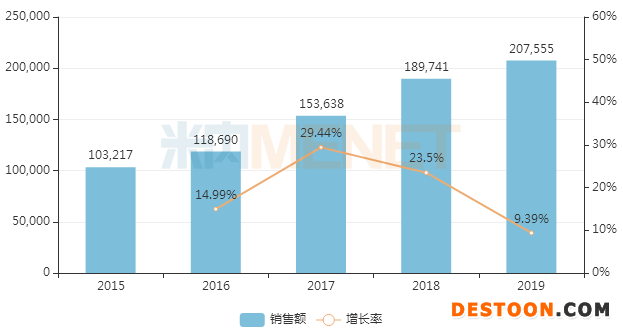 目前國(guó)內(nèi)上市銷售的丙戊酸鈉主要?jiǎng)┬陀凶⑸鋭⒕忈屍?、普通片劑、糖漿劑及口服溶液。米內(nèi)網(wǎng)數(shù)據(jù)顯示,近幾年來丙戊酸鈉在中國(guó)城市公立醫(yī)院、縣級(jí)公立醫(yī)院、城市社區(qū)中心以及鄉(xiāng)鎮(zhèn)衛(wèi)生院(簡(jiǎn)稱中國(guó)公立醫(yī)療機(jī)構(gòu))終端銷售額逐年上漲,2019年實(shí)現(xiàn)銷售收入20.8億元,同比增長(zhǎng)9.39%。在抗癲癇藥TOP20通用名藥品中,以38.4%的市場(chǎng)份額排位第一。