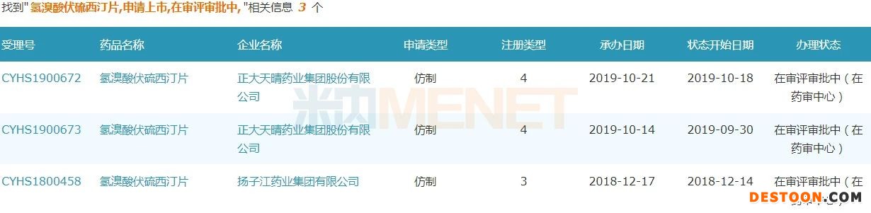 在此之前,揚(yáng)子江和正大天晴藥業(yè)集團(tuán)分別以仿制3類(lèi)、4類(lèi)提交上市申請(qǐng),在審評(píng)審批中(在藥審中心)。