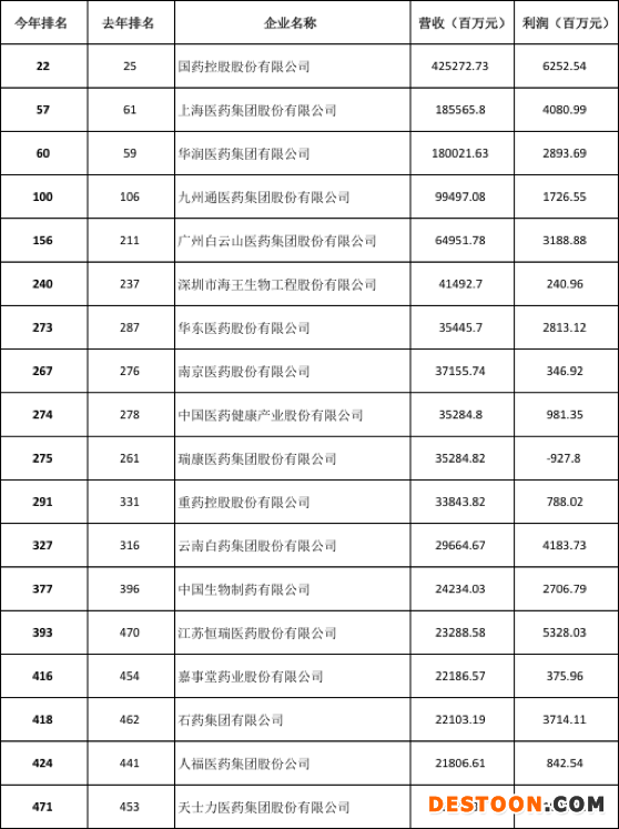 2020年《財(cái)富》中國(guó)500強(qiáng)上榜藥企