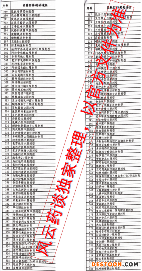 上述名單上的500個藥品主要為采購金額前80%的品種。名單中除了大量化學藥,還涉及多個生物藥,包括重組人Ⅱ型腫瘤壞死因子受體-抗體融合蛋白、利妥昔單抗、曲妥珠單抗、貝伐珠單抗等,以及多個胰島素品種。
