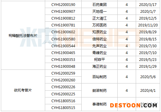 米內(nèi)網(wǎng)數(shù)據(jù)顯示,國內(nèi)已有15家藥企按仿制4類報產(chǎn)枸櫞酸托法替布片。2019年,正大天晴藥業(yè)集團拿下枸櫞酸托法替布片首仿,齊魯制藥第2家獲批;近期,科倫藥業(yè)、揚子江藥業(yè)集團、南京正大天晴的枸櫞酸托法替布片也相繼獲批并視同過評;石藥、先聲、海正等10家企業(yè)該產(chǎn)品上市申請正在審評中。