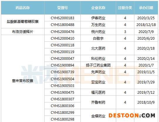 抗炎藥和抗風濕藥新注冊分類申請在審評企業(yè)