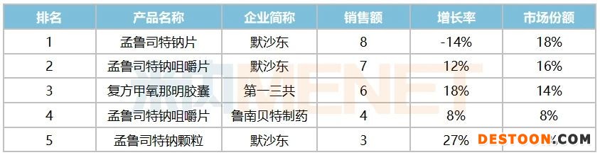 表3:2019年阻塞性氣管疾病用藥內(nèi)服品牌TOP5(單位:億元)