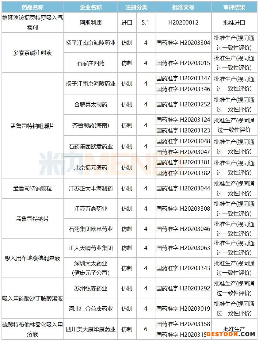近期國內(nèi)阻塞性氣管疾病用藥領(lǐng)域輪番迎來好消息:上周五健康元的吸入用布地奈德混懸液、揚(yáng)子江的孟魯司特鈉咀嚼片獲批上市,7月30日北京福元醫(yī)藥(原北京萬生藥業(yè))的孟魯司特鈉咀嚼片也獲批了,三個新品均按新分類視同過評。至此,2020年以來共有16個阻塞性氣管疾病新品獲批,其中國產(chǎn)新品占15個。第三輪國家集采已進(jìn)入企業(yè)申報階段,孟魯司特鈉咀嚼片、孟魯司特鈉顆粒入選,進(jìn)口與國產(chǎn)品牌價格戰(zhàn)即將展開。