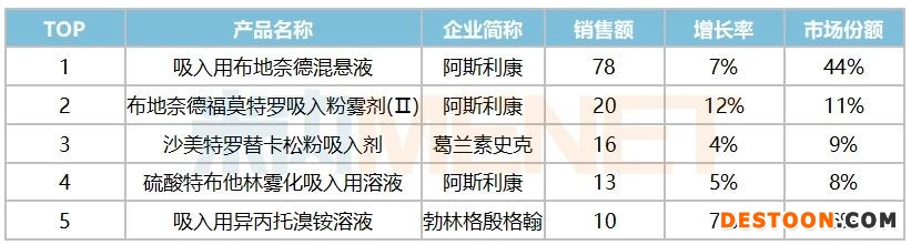 吸入用布地奈德混懸液也是阿斯利康的重磅產(chǎn)品,適應(yīng)癥為治療支氣管哮喘。2020年2月正大天晴藥業(yè)集團(tuán)的4類仿制獲批上市并視同過評,成為該產(chǎn)品國內(nèi)首仿,7月健康元子公司深圳太太藥業(yè)的4類仿制也獲批上市并視同過評,成為國內(nèi)第二家,阿斯利康獨(dú)占中國公立醫(yī)療機(jī)構(gòu)終端77億市場的局面終于被打破。