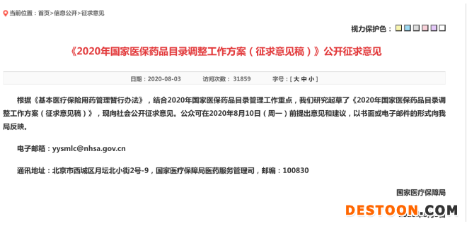 8月3日,國家醫(yī)保局發(fā)布《2020年國家醫(yī)保藥品目錄調(diào)整工作方案(征求意見稿)》(以下簡稱“意見稿”),意見征求時間截止2020年8月10日。