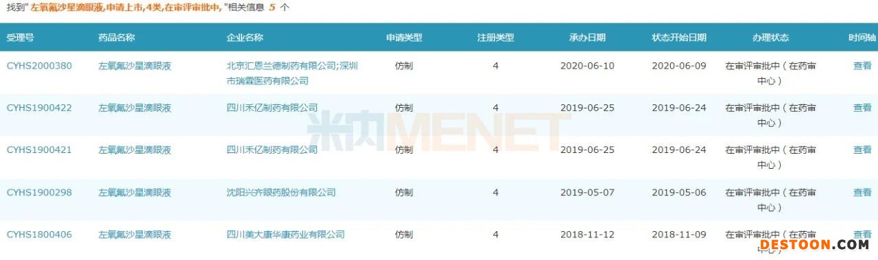 在此之前,沈陽興齊眼藥、四川美大康華康藥業(yè)均以仿制4類申報上市,在審評審批中(在藥審中心)。