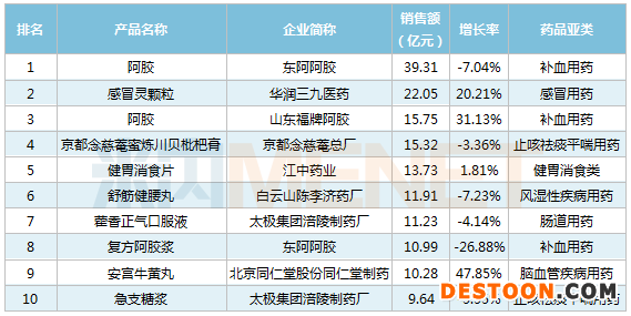 北京同仁堂股份同仁堂制藥的安宮牛黃丸以47.85%的銷售增長率領(lǐng)跑,福牌阿膠的阿膠則以31.13%的銷售增長位列第二。江中藥業(yè)的健胃消食片銷售額則繼續(xù)保持在13億元以上,有望沖擊14億元。