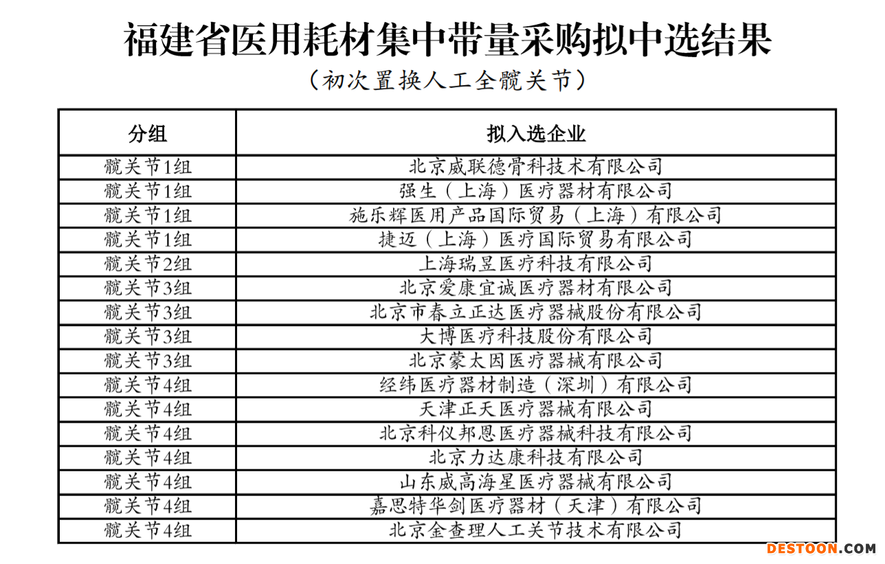 據(jù)了解,7月10日福建省醫(yī)保局發(fā)布耗材集中帶量采購(gòu)的結(jié)果通知,涉及人工關(guān)節(jié)(包括人工全髖關(guān)節(jié)、人工膝關(guān)節(jié))、留置針、超聲刀、鎮(zhèn)痛泵等4類耗材。