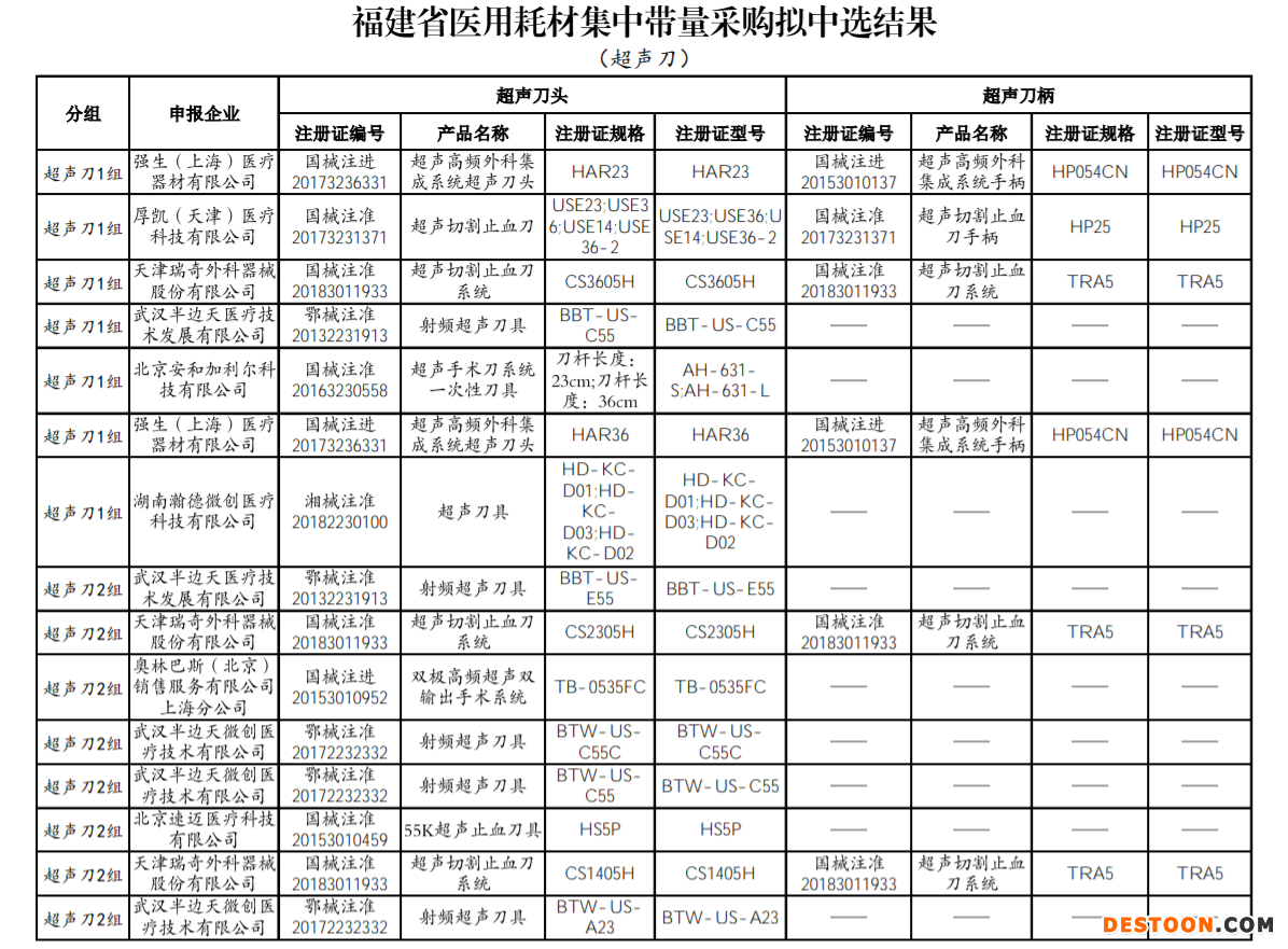 從中選結(jié)果可以看到,超聲刀類耗材擬中選企業(yè)包括強(qiáng)生、奧林巴斯、天津瑞奇、北京速邁以及武漢半邊天等械企;