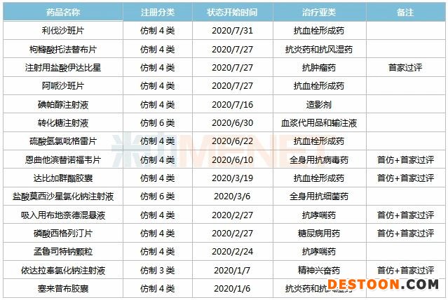 表1:2020年至今正大天晴獲批上市的仿制藥