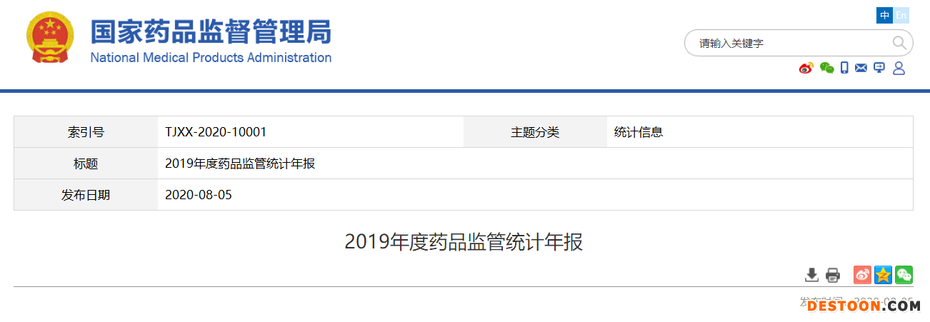 8月5日,國家藥監(jiān)局公布了《2019年度藥品監(jiān)管統(tǒng)計(jì)年報(bào)》(以下簡稱《年報(bào)》)。
