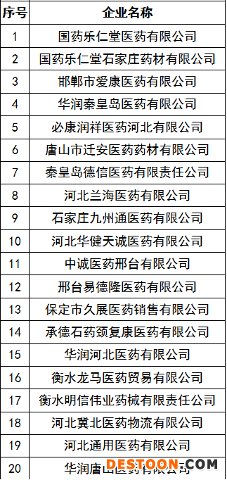 值得注意是的,河北省此次選定了20家藥品批發(fā)企業(yè)(見下表)進(jìn)行中藥飲片標(biāo)準(zhǔn)數(shù)據(jù)對照和追溯數(shù)據(jù)上傳工作。要求企業(yè)按照中藥飲片名稱、執(zhí)行標(biāo)準(zhǔn)、生產(chǎn)企業(yè)、產(chǎn)地等產(chǎn)品信息,對照《中藥飲片基礎(chǔ)數(shù)據(jù)標(biāo)準(zhǔn)化對照表(第一批)》,形成品種編碼對應(yīng)關(guān)系。將本單位中藥飲片的供貨商、客戶的所屬區(qū)域與中心的“行政區(qū)域信息”進(jìn)行對照,形成區(qū)域代碼對應(yīng)關(guān)系。